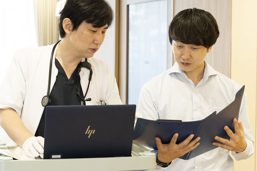 私が仕事をする上で大切にしているのは、「プロフェッショナリズム」と「安心を届けること」です。医師は専門的な知識や技術だけでなく、高い倫理観と責任感が求められる仕事です。恩師から教わった「プロである意識を持ち続けなさい」という言葉は、今も自分の指針になっています。訪問診療では、病院のような高度医療はできませんが、その分「この先生が診てくれるから安心」と思ってもらえることを大切にしています。診療前には入念に準備を行い、ほぼ完成したカルテを持って患者さんのもとへ向かい、「今日はここを確認しよう」と明確な課題を持って診療に臨みます。また、訪問診療は技術よりも人間力が問われる現場です。経歴よりも人柄が見られるからこそ、誠実に、丁寧に、真摯に向き合うことを心がけています。信頼を積み重ね、安心した笑顔を見せてもらえたとき、この仕事を選んでよかったと心から思います。