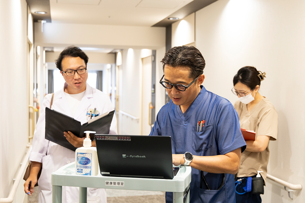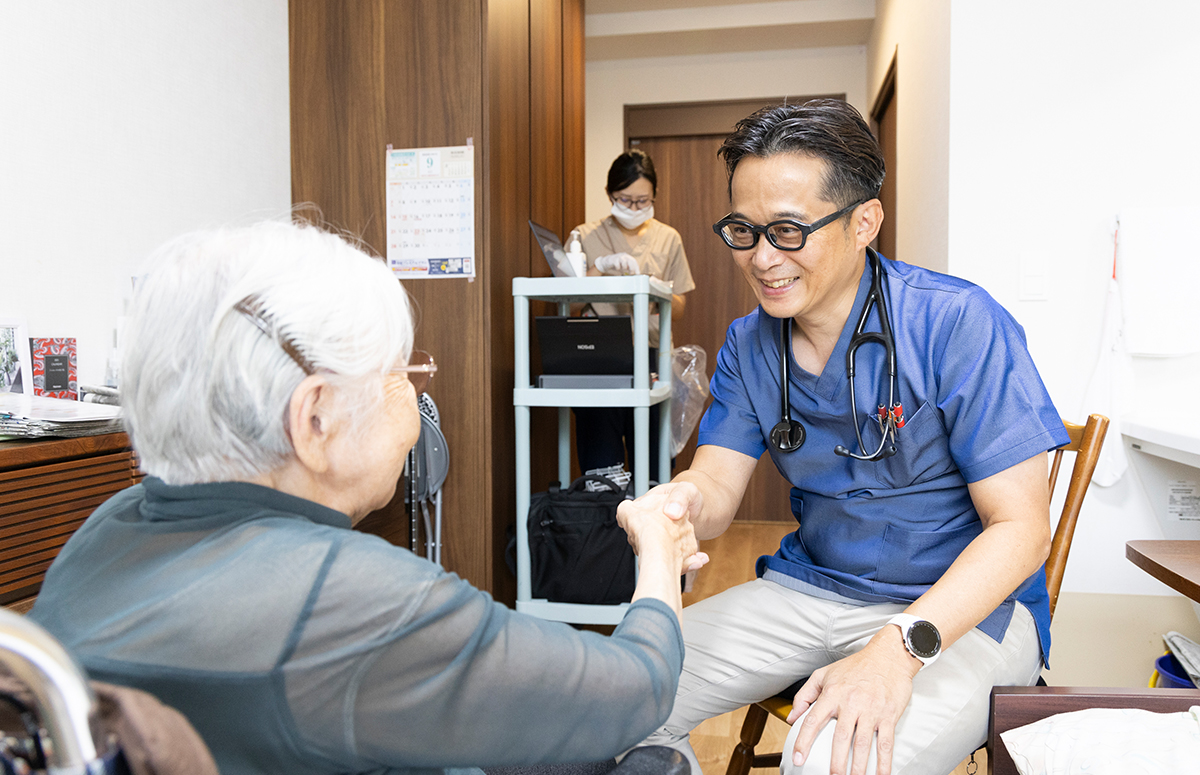 訪問診療に興味がある医師に伝えたいのは、「熱意のある人に来てほしい」です。ときには大変な場面もありますが、その分、患者さんの笑顔や言葉に救われる瞬間がたくさんあります。笑ってくれるだけで嬉しくなり、「また明日も頑張ろう」と思えます。そんな笑顔と笑いのある医療を一緒に作っていきたいと思います。私はよく患者さんと冗談を言い合いますが、そうやって心が通うからこそ、私の医療を受け入れていただけます。困っている人のそばで、笑顔とユーモアを忘れずに寄り添える、そんな仲間と一緒に働けたら嬉しいです。