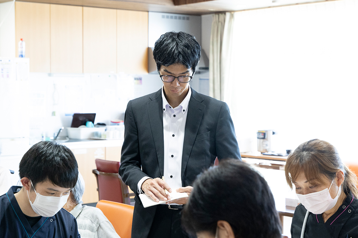 私も医療とは関係のない業界から転職しました。同じように他業種から転職して活躍している仲間がたくさんいます。これまでの経験が違っていても、臆せず飛び込んでほしいと思います。大切なのは、仕事に対して真面目に向き合う姿勢と、周りから学ぼうとする謙虚さです。その気持ちさえあれば、自然と知識やスキルが身につき、チームの中で頼られる存在になれます。訪問診療は今後ますます必要とされる成長分野ですし、訪問診療ネットワークは、その中心となる存在を目指しています。人の暮らしを支える仕事に挑戦したい方には、きっとやりがいを感じてもらえる環境だと思います。