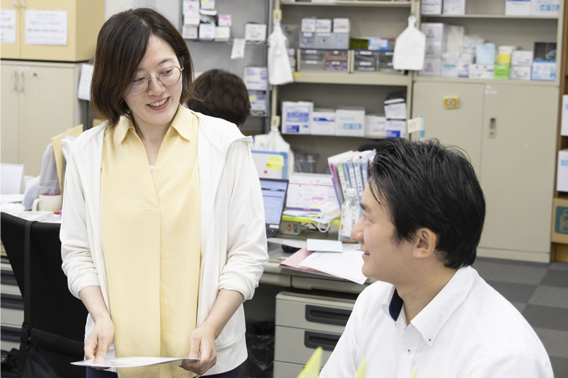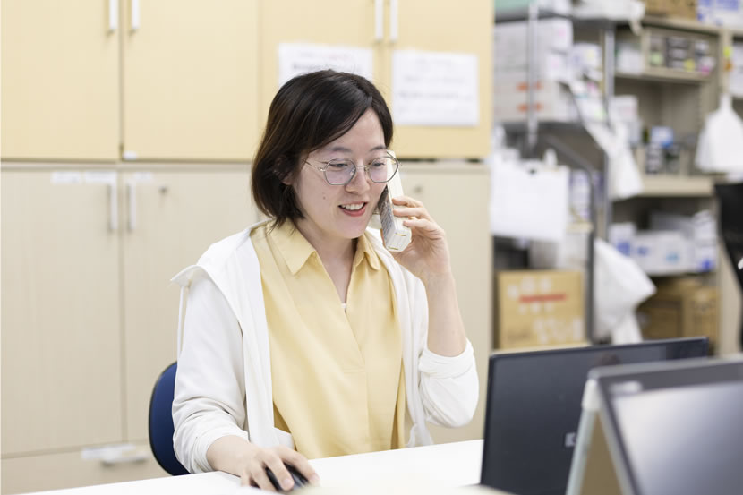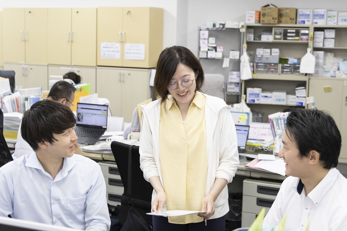 訪問診療ネットワークのいいところは、事務職を含めて働きやすい環境が整っていることです。私が入職した当時の医療業界は「結婚や出産をしたら辞める」というイメージが強かったのですが、ここではまったく違います。育休や時短勤務を活用して働く職員も多く、事務職でも安心して長くキャリアを築けます。また、人間関係はとてもフラットで、先生や看護師、事務職が対等に意見を出し合える職場です。職種の壁がなく、互いを尊重しながら協力し合える環境だからこそ、いい意味で「会社的」な雰囲気があり、居心地の良さを感じています。